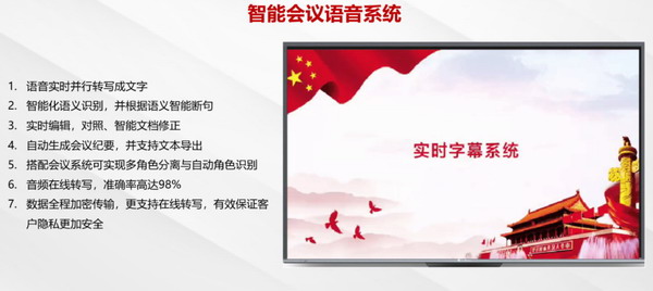 由公信會議和人民日報數字傳播聯合推出的黨建會議系統是專門針對黨建事務的一體化產品專業解決方案,結合黨建工作的實際需求,借助信息化科技手段,利用大數據、云計算、物聯網、人工智能等前沿技術,實現了智能語音系統、人臉識別簽到、黨建內容聚合平臺、黨建云平臺、政務輿情、人民閱讀、黨建日歷、人民文獻等豐富功能,有效推動黨建工作的創新和發展。