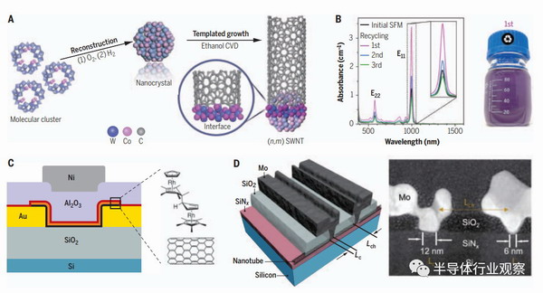 (A)使用難熔W-Co納米晶催化劑的目標(biāo)手性的模板化碳納米管生長。CVD,化學(xué)氣相沉積;SWNT,單壁納米管。