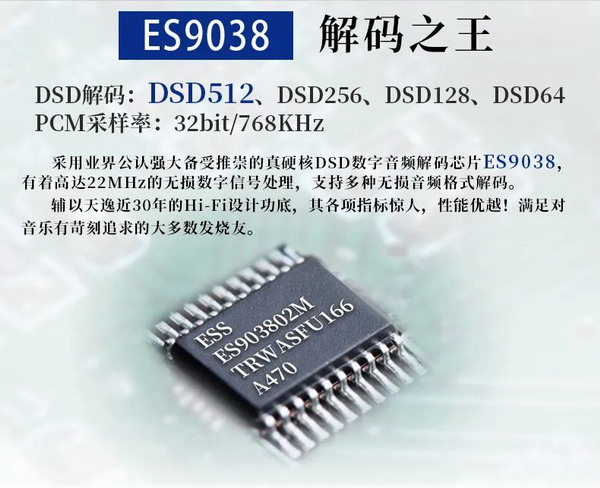 音頻解碼芯片采用更強(qiáng)大硬核的ES9038,支持多種無(wú)損音頻格式解碼;