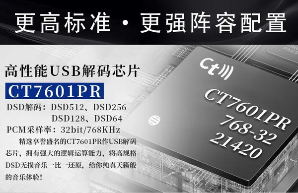 高性能USB解碼芯片CT7601PR和10顆王牌運(yùn)放,帶來(lái)更高標(biāo)準(zhǔn)、更強(qiáng)陣容的配置。