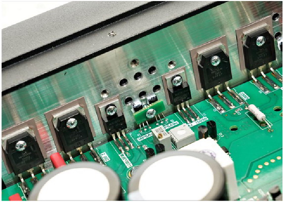 輸出接兩臺超低音。內部,貫徹600i雙單聲道設計,兩個300VA環牛(低磁漏、低電漏及低溫)獨立供電至左聲道。變壓器后,是共40,000µ F電容儲備(每聲道20,000µ F),兩側板是兩份放大模組連散熱器。內部電路板同樣採用Simaudio出品的四層結構,主要採用SMD表面黏著元件。前級以OP amp作訊號放大,后級採用差動式輸入,后級放大用Simaudio自家出品的雙極功率管……其實,改變在哪?