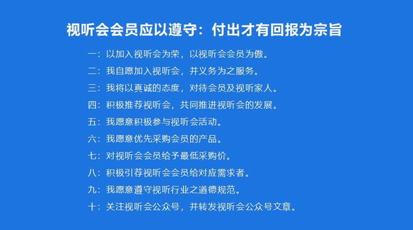 視聽會由視聽行業協會(香港注冊)牽頭,聯合中投傳媒旗下中國投影網、音響網、數字標牌網、視聽網等多家視聽行業專業媒體平臺,匯集行業龍頭企業,行業專家共同發起的視聽活動組織委員會(簡稱視聽會)。 視聽會目的:通過線下活動與線上線下全渠道傳播相結合,以體驗式巡展、線下交流會、精品品鑒會、主題研討會,沙龍等方式,整合視聽資源、聚焦行業脈動,解決行業瓶頸,建立視聽行業新生態。