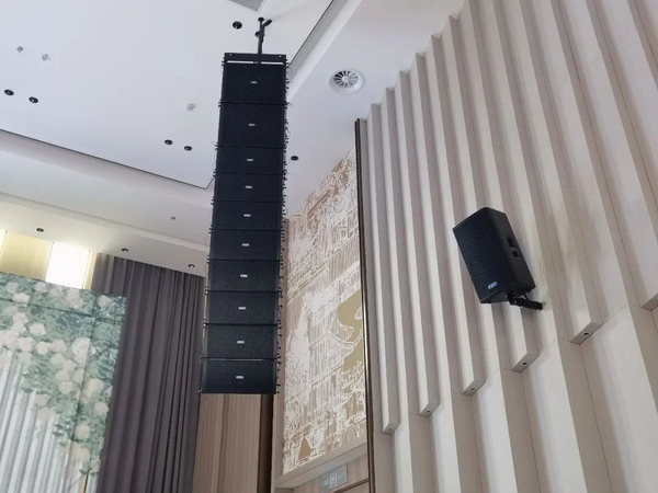 為更好地延續千鶴湖宴中式雅致的格調,宴會廳的擴聲系統選用FBT MUSE210L線陣列系統,兼顧實用與優雅,以品質愈人心。分別為16只MUSE 210L和4只MUSE 118FS/FSC,組成線陣列系統。